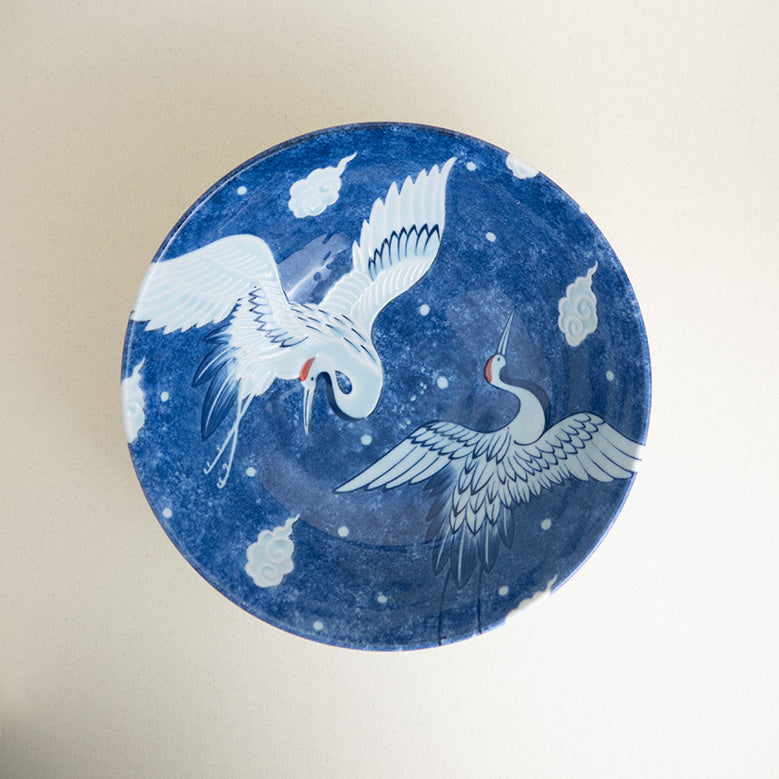 La grulla es un símbolo de longevidad, paz y buena fortuna en la cultura japonesa, lo que convierte este cuenco en una pieza con significado, ideal tanto para el uso diario como para regalar. Su forma amplia lo hace perfecto para ramen, sopas, arroz o donburi, combinando funcionalidad y estética en una vajilla que transmite calma y tradición.