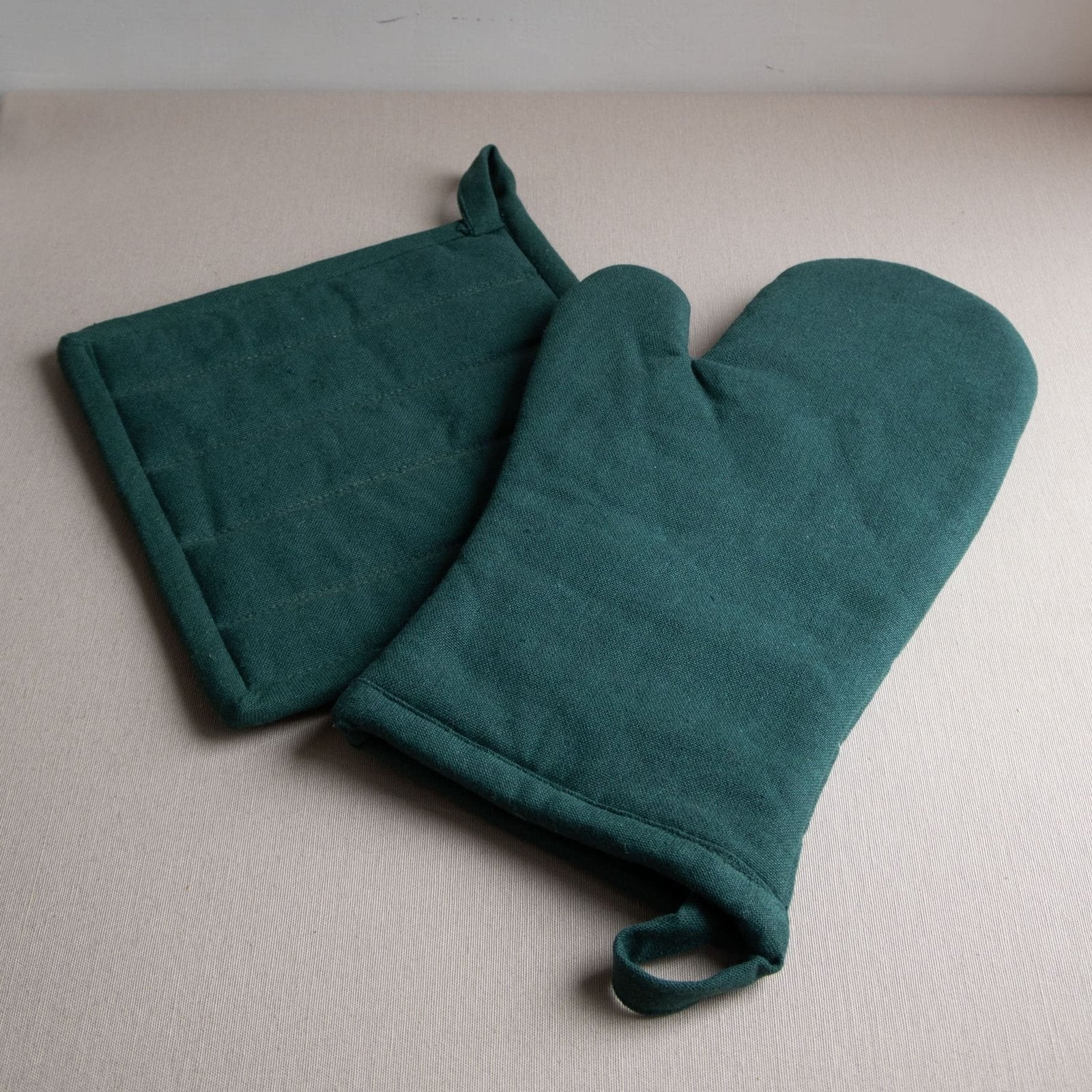 Instrucciones de cuidado: Para cuidar el juego de guante y agarradera, se recomienda lavarlos a máquina en un ciclo suave con agua fría para preservar la calidad de los materiales. Evita el uso de lejía o detergentes agresivos y, para mantener su forma, sécalos al aire o a baja temperatura en la secadora. No planchar ni lavar en seco.
