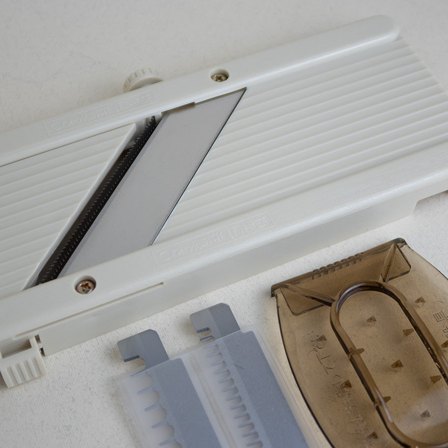 Mandolina japonesa diseñada para cortar verduras de forma rápida, uniforme y precisa. Ideal para preparar ensaladas, guarniciones, salteados o encurtidos, permite obtener láminas y cortes regulares con un esfuerzo mínimo. Su diseño compacto y funcional facilita el manejo y el control durante el corte, convirtiéndola en una herramienta muy práctica tanto para el día a día como para recetas de cocina asiática en las que la precisión es clave. Incluye diferentes cuchillas intercambiables para adaptar el tipo de corte según la preparación.