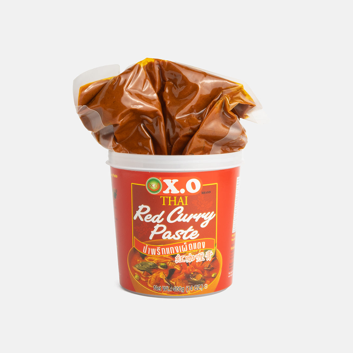 La pasta de curry rojo tailandés X.O (400 g) es una mezcla tradicional de ingredientes frescos y especias que sirve como base para preparar el famoso curry rojo tailandés. Su característico color proviene de los chiles rojos secos, combinados con lemongrass, ajo, galanga, chalotas y hojas de lima kaffir, que aportan ese equilibrio perfecto entre picante, aromático y ligeramente dulce.