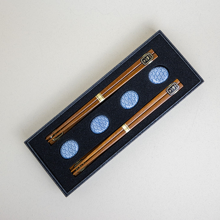 Set de 4 palillos y 4 soportes Seigaiha (olas japonesas)