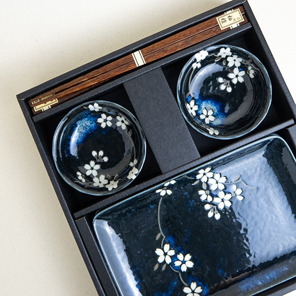 Incluye un plato de sushi, dos salseras a juego para salsa de soja u otros acompañamientos, y dos palillos de madera, creando un set completo y equilibrado para compartir. Su diseño lo hace ideal tanto para el uso diario como para ocasiones especiales, y también como regalo para amantes de la cocina japonesa.