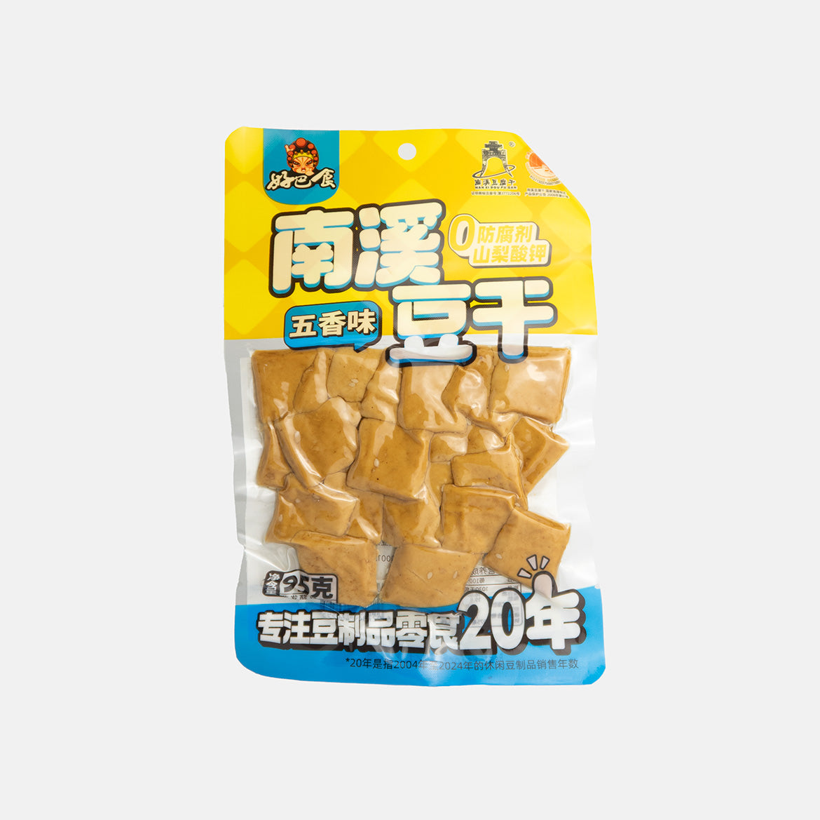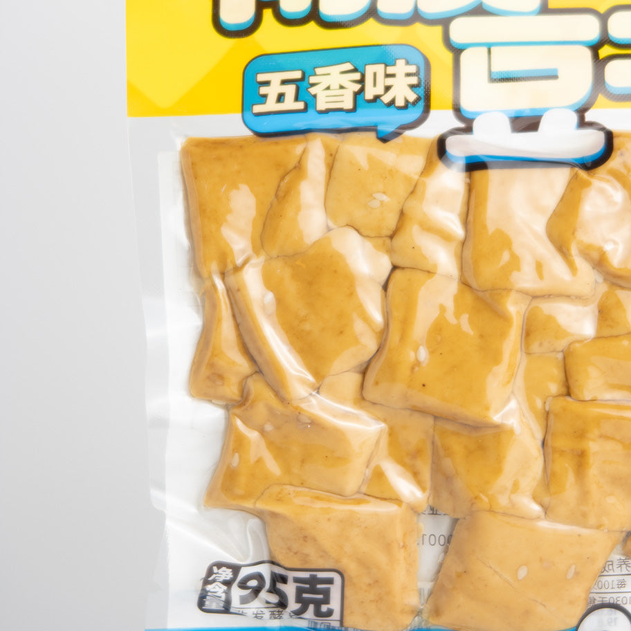 El tofu seco sabor cinco especias es un aperitivo asiático listo para disfrutar, elaborado a partir de tofu prensado y condimentado con la mezcla tradicional de cinco especias chinas: anís estrellado, clavo, canela, hinojo y pimienta de Sichuan. Su textura firme y masticable y su aroma especiado lo convierten en un snack ideal para cualquier momento del día.