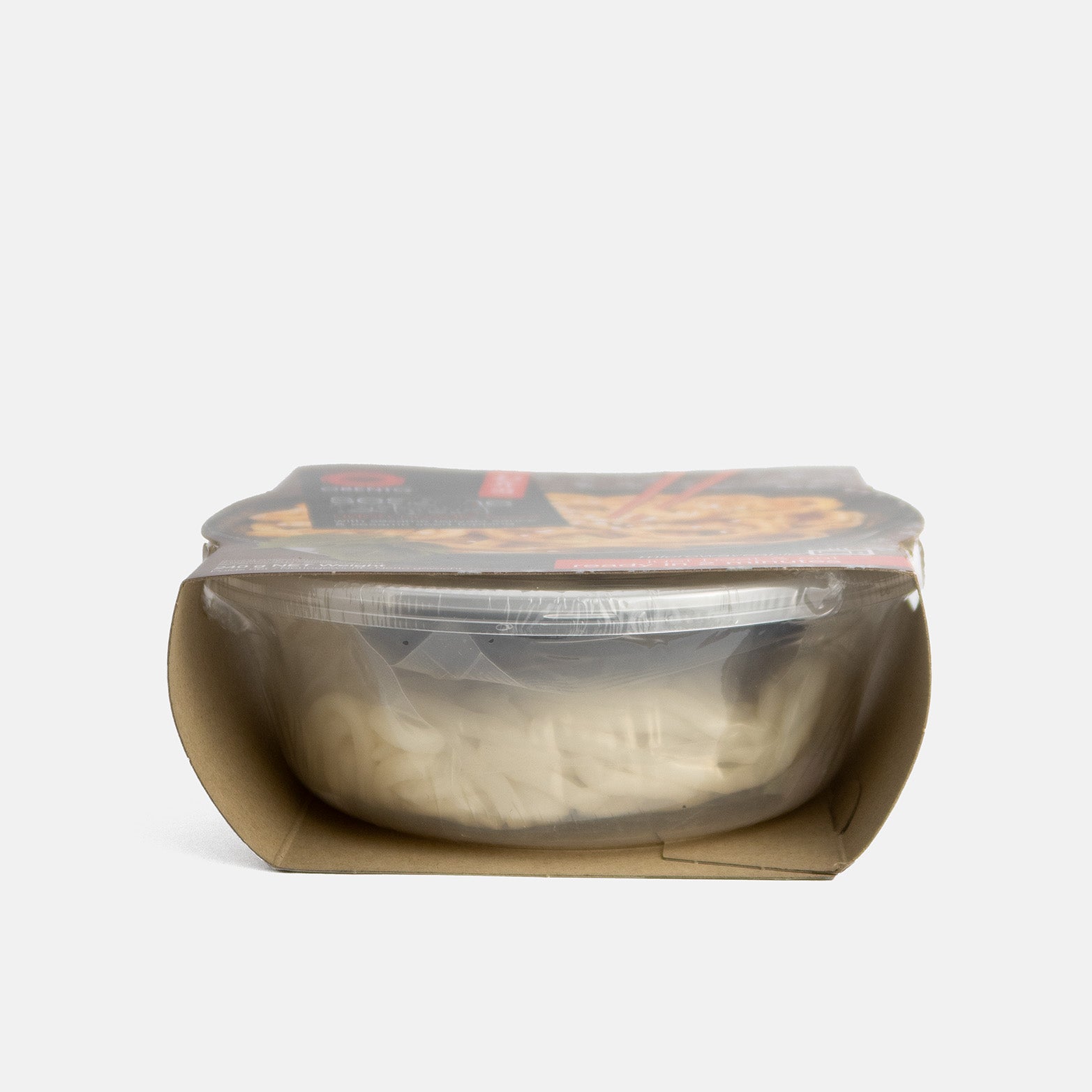 Modo de uso: Retirar el contenido del bol. Añadir 4 cucharadas de agua y los vegetales deshidratados en el bol. Añadir los fideos y la salsa. Cubrir con la tapa sin cerrarlo del todo. Ponerlo en el microondas 2 minutos a máxima potencia. Mezclar todo.